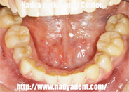 左下の奥歯は以前の状態よりもより内側に倒した状態にしています。