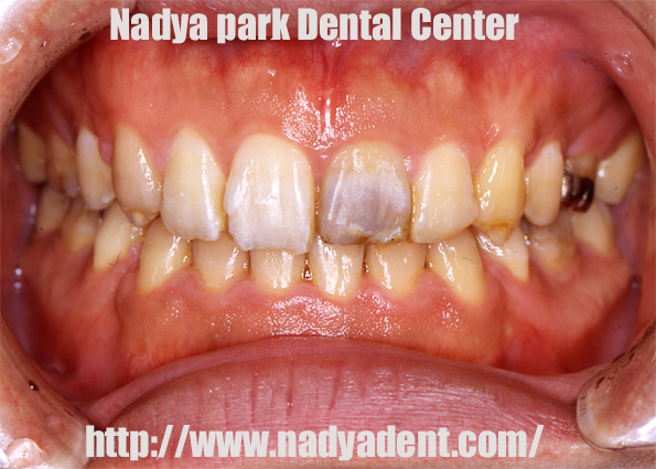 この患者様の主訴は見た目が悪い、かぶせものの色や形も気になるとのことでした。